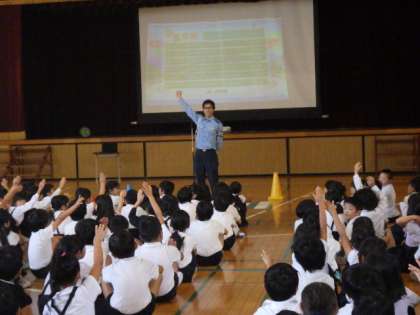 西警察や区役所の人に来てもらい、交通安全指導が行われました。