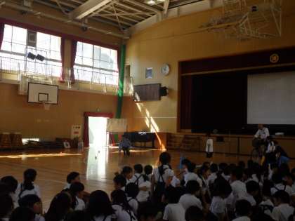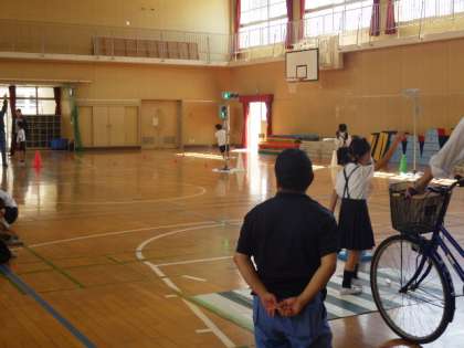 低学年はDVDを見た後、実際に歩行の練習を行いました。