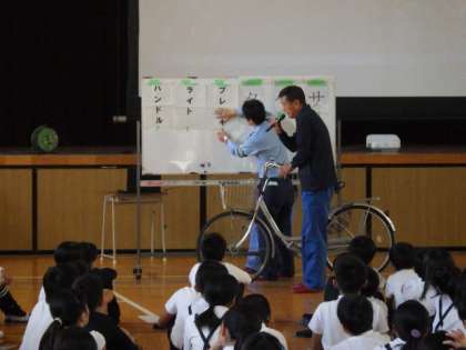 西警察と区役所の方にきていただき、高学年の交通安全指導では、自転車走行中の注意事項を中心にお話をしていただきました。