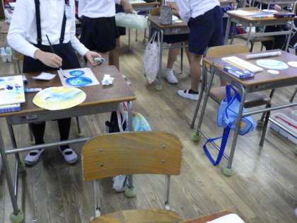 宇宙を作っています。作品展に向けての制作です。完成が楽しみですね。