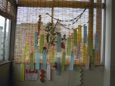 7月4日(木) みんなの願い事を書いた短冊を飾っています。 願い事かなうといいね。