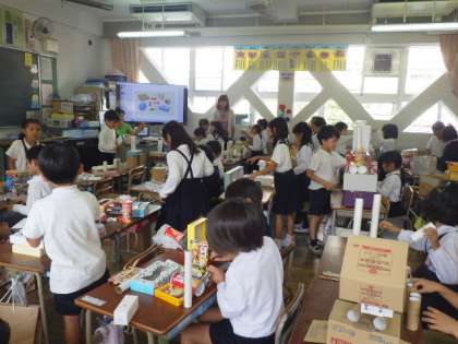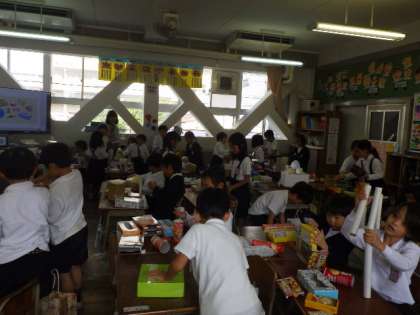 家から持ってきたいろいろな形を使って楽しく学習しています。