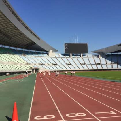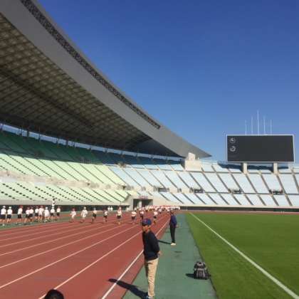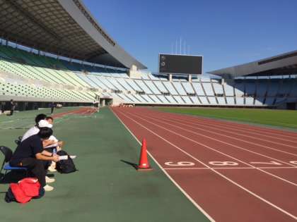 100m走 アップで一度コースを走っています