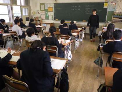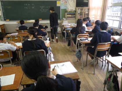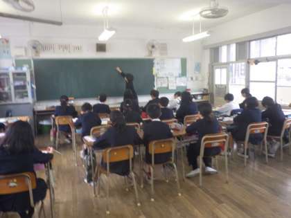 花乃井中学校の英語の先生と一緒に外国語の学習です。