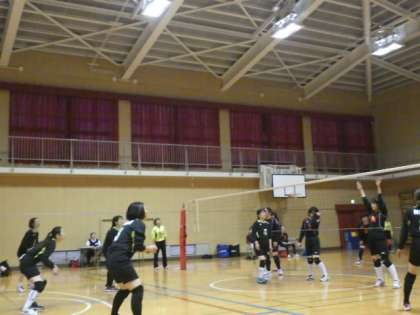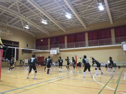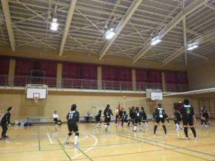 明治小学校で、花乃井中学校、本田小学校、西船場小学校と明治小学校のPTAバレーボールチームが集まり親善試合が行われました。