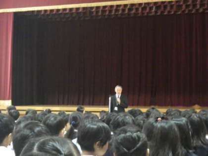 校長先生からは、先日のPTAバレーボール大会で準優勝した明治バレーボール部について、声を掛け合いながら、チームプレーができていたことの話がありました。