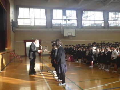 まず、校長先生からは先週行われたオリックス杯で準優勝したキックベースボールクラブの表彰がありました。