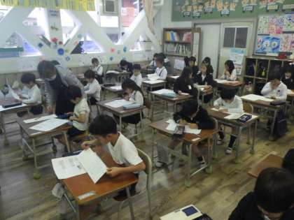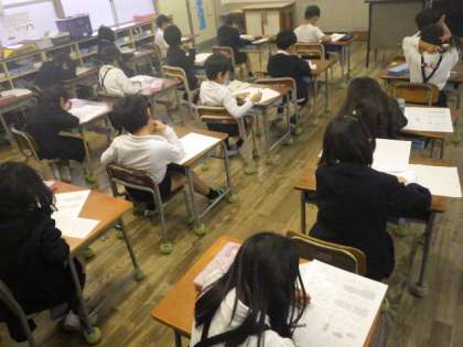 上級生に負けないぐらい、しっかりと集中してテストに取り組んでいます。