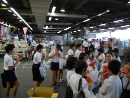 すいかをおいしくいただきました。卸売市場のみなさん、お世話になりました。