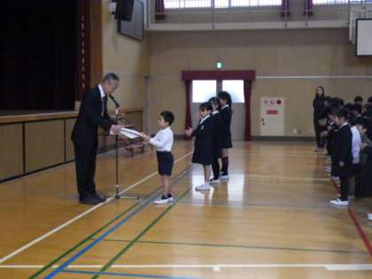 校長先生からは、先日大阪大会に出場したミニバスケットボールクラブチームの話と美しい日本語をそれぞれ個人で考えてみましょうというお話がありました。