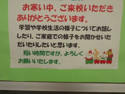 今週月曜日から個人懇談会が行われています。寒い中、ご来校いただきありがとうございます。