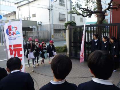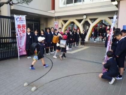 今日は来年度、最高学年になる5年生が中心となってあいさつ運動に取り組みました。