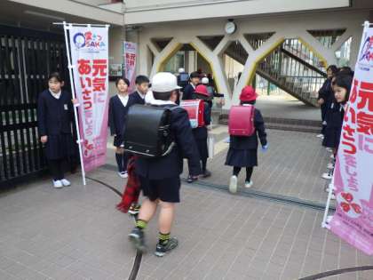 運動期間だけではなく、常にあいさつがしっかりとできる児童を育てていきたいと閑雅ています。