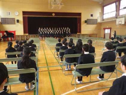 卒業式に向けて5,6年生で初めての合同練習を行いました。