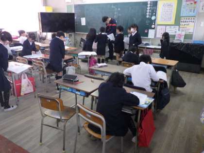 3年生の復習をしています。一問一問、一人ひとり丁寧にわからないところを教えながら、4年生に向けて勉強しています。