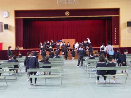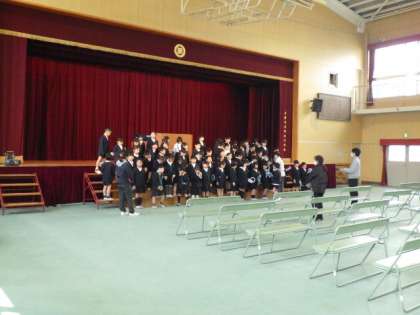 4月から入学してくる1年生に向けて、入学式のお祝いの練習をしています。