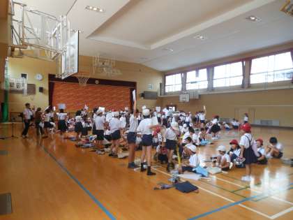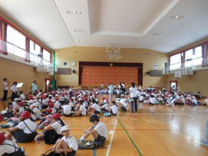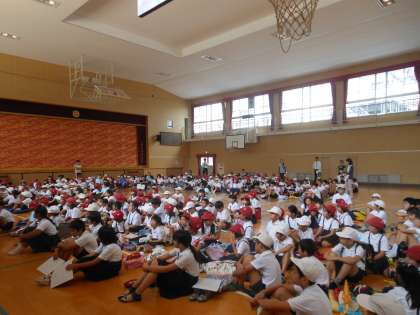 校内放送の指示に従い、速やかに体育館に