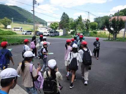 そのあとは、魚つかみ、高原ミニオリエンテーリング、はがき書きのそれぞれの班に分かれての活動です。時間ごとにローテーションで活動が変わります。子ども達は「魚つかみまだかな」「高原行きたい」等、自分の一番したいことを声に出しています。