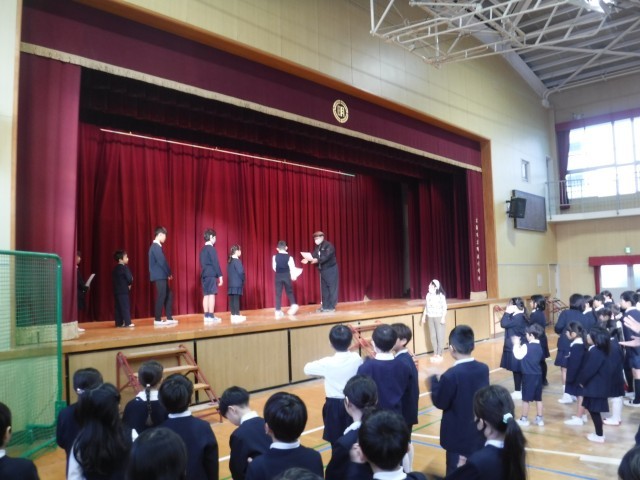 今日は、2学期最終の児童朝会です。