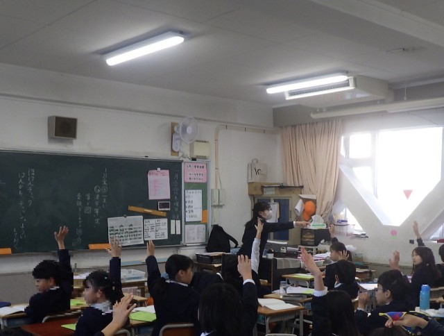 健康委員会では、毎月「ほけんチェックの日」に、各教室をまわって ハンカチ・ティッシュ・歯みがき・爪 の4つを確認しています。
