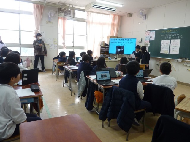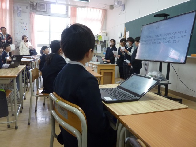 聞き方や話し方も意識しながら、スライドを使って上手に説明をしていました。