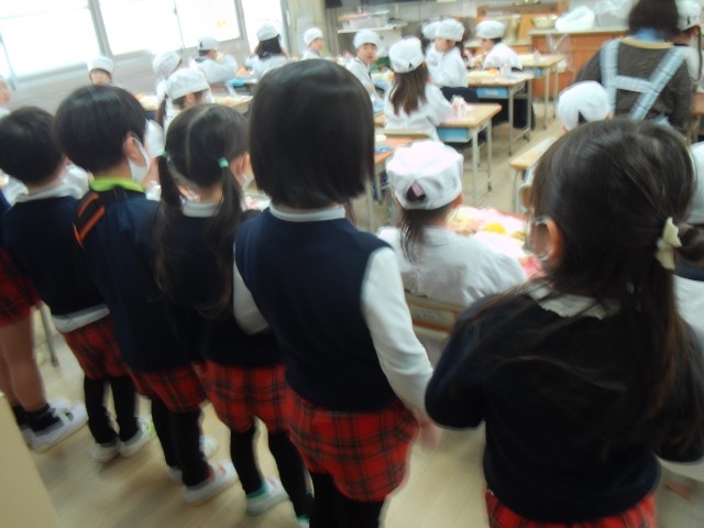 靱幼稚園の年長組さんが、1年生の給食見学で明治小学校に来てくれました。