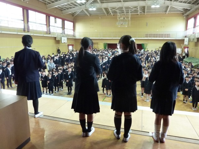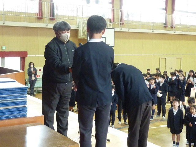 今日の児童朝会では、読書感想文、サッカー、合唱部とたくさんの表彰がありました。