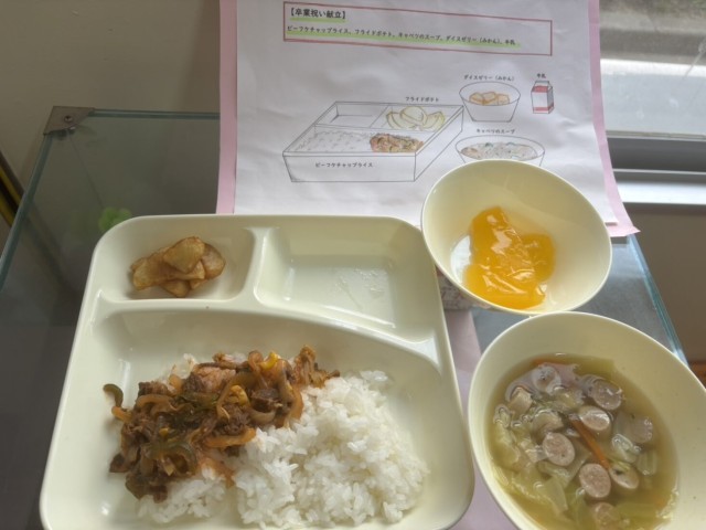 3/9 本日は「卒業祝い献立」です。