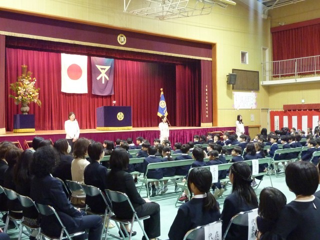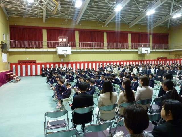 少し緊張した様子でしたが、入学式中も「ありがとうございます。」と丁寧に返事をしたり、校長先生やPTA会長さんの話を一生懸命に聞くことができたりと、立派に明治小学校の一員としてのスタートを切りました。