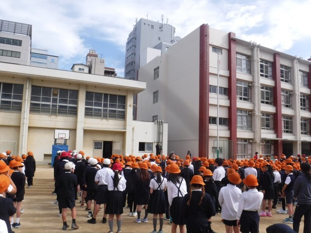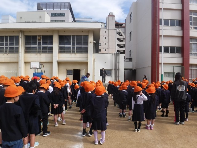今日は1年生も参加し、運動場に全学年が揃いました。