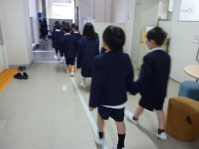 学校をたんけんで校内を静かに賢く歩いていました。