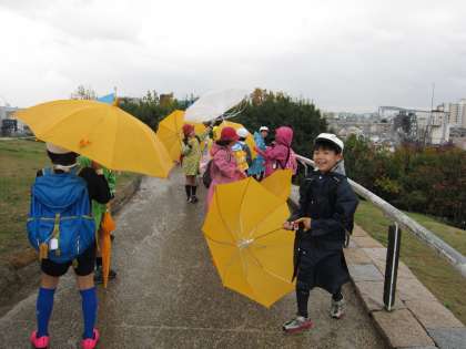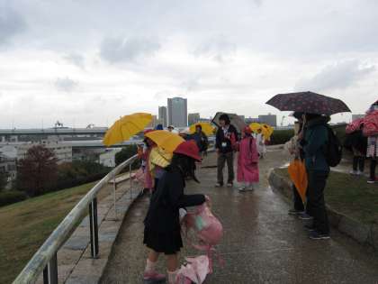 でも、児童たちは雨の展望台での一時を満喫