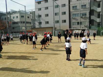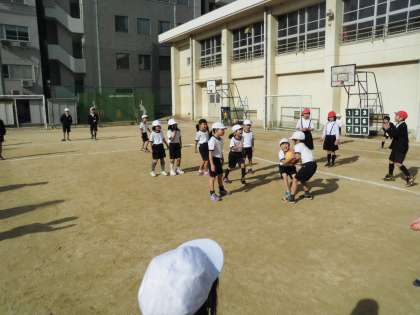 今日の20分休憩は、4年1組VS1年1組の試合、