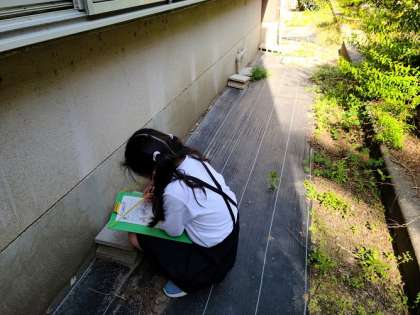 3年生が理科の学習で校内フィールドワークに出かけていました。