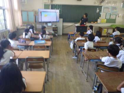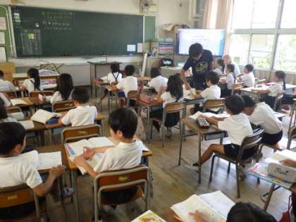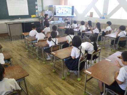1年生から6年生までDVDを見ながら、英語に慣れるように学習しています。