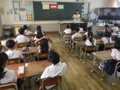 九条東小学校の栄養教諭である南浦先生に来てもらい、栄養指導を受けました。