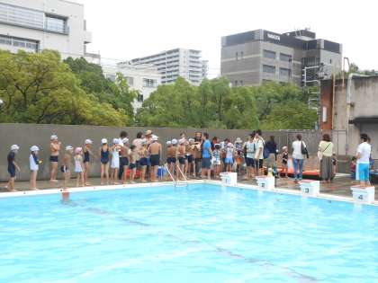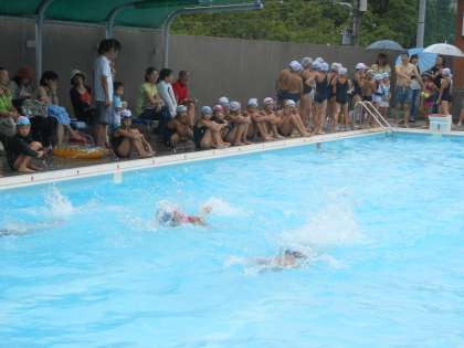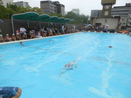 小学生と中学生の部で、競泳大会を行いました。