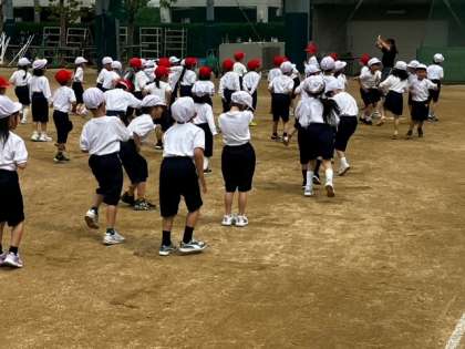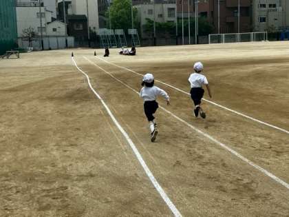 広い運動場で50m走を行いました。みんな「ヨーイドン」の合図をよく聞き、一生懸命走っていました。最後まで走りきる姿、走っている子を応援する姿がすてきでした。