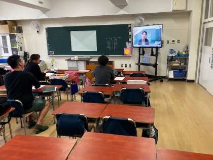 東西でパソコンをつないだり、放課後にそれぞれの学舎に行って打ち合わせをしたりしています。