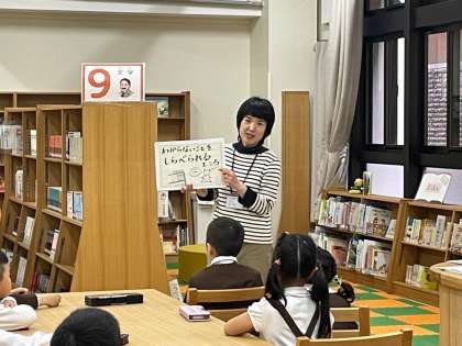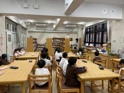 最初の図書の時間に、図書司書の先生から図書室の使い方について説明をしてもらいました。
