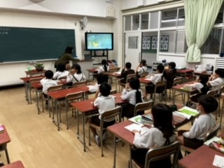 モンシロチョウなどが卵からかえるところの様子を視聴していました。「卵からかえったばかりの幼虫は何をしているのだろう。」などいろんな疑問や気づきが声に出ていました。