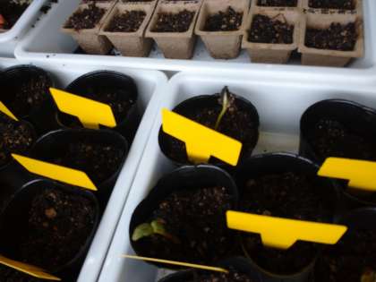 4階の窓際で、3年生と4年生が種を植えて育てています。