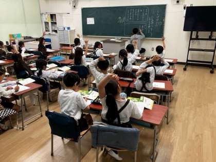 たんぽぽについて知っていること、「色や形」、「見つけた場所」などについて交流していました。たくさんの意見が出て、いろいろな表現ができているなと感心させられました。