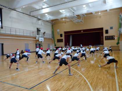 ソーラン節を引き続き練習しています。振り付けをだいぶ覚えて踊ることができています。何より、大きなかけ声で気持ちを表しているので、とても迫力がありました。