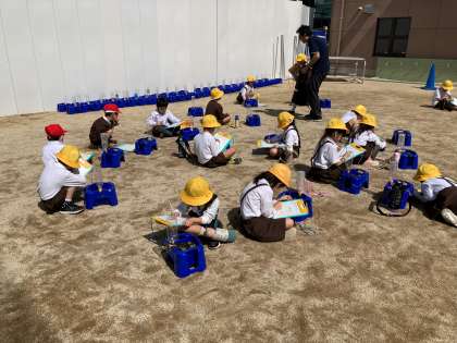 まだ小さなふた葉ですが、一枚一枚しっかりと観察していました。「早く大きくならないかなあ。」と、あさがおの成長を楽しみにしながら観察カードに記入していました。