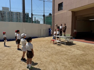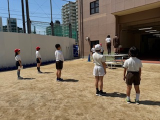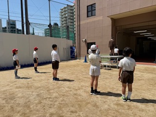応援団長と運営委員で閉会式の練習をしました。きびきびした動きができていました。