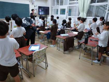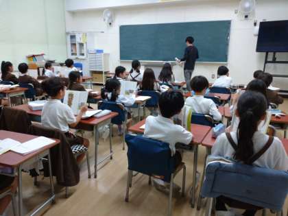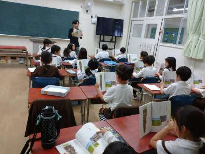 スクールアドバイザーの先生に教わったことを、早速子どもたちに伝えました。教科書の持ち方や姿勢を指導しました。子どもたちはみなでそろって上手に音読することができていました。