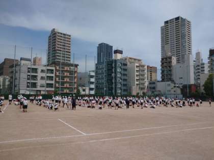 【5年生】東西合同練習! 公開日 2024/05/20 更新日 2024/05/20 5年生 西学舎の運動場に、東西の5年生が集まってダンスの練習をしました。全部で7学級。1学年で200人を超す人数でのダンスです。それぞれの立ち位置を決めるだけでも一苦労です。それでも踊り出して、全員で手拍子を打つだけで、200人超えの壮観なダンスとなります。 練習後、東学舎に帰る5年生を、西学舎の5年生がお見送りをしている姿がほほえましかったです。 いいね(0)