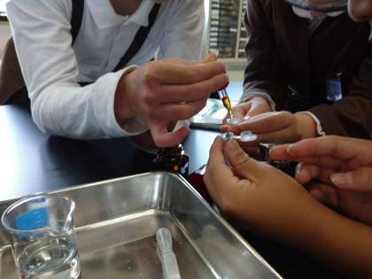 見事に青紫色への変化が見られました!唾液にはどのようなはたらきがあるか、学習を進めます。