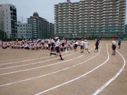 そのあと、リレーの練習をしました。広い運動場を全力で駆け抜けていました。